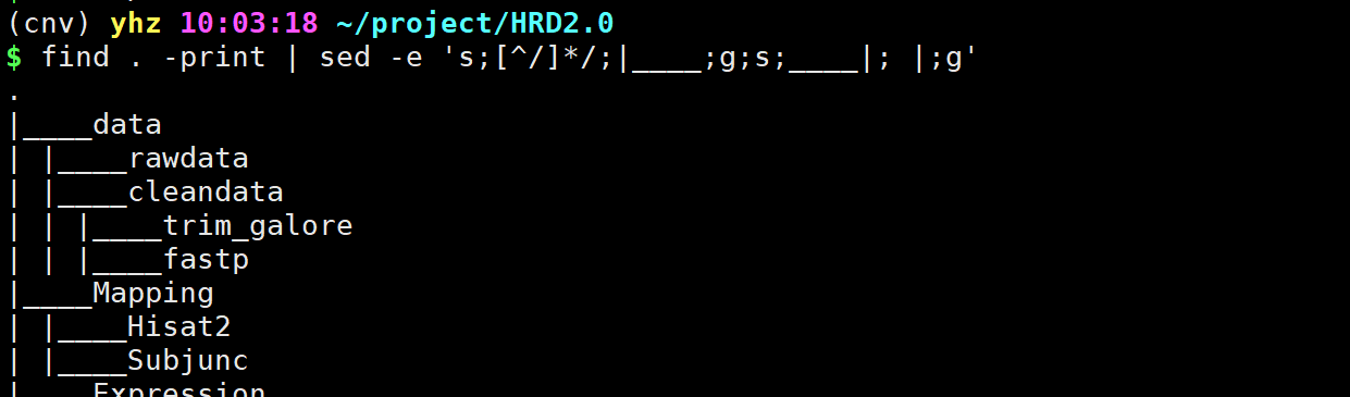 alias treee='find . -print | sed -e '\''s;[^/]*/;|;g;s;|; |;g'\'''