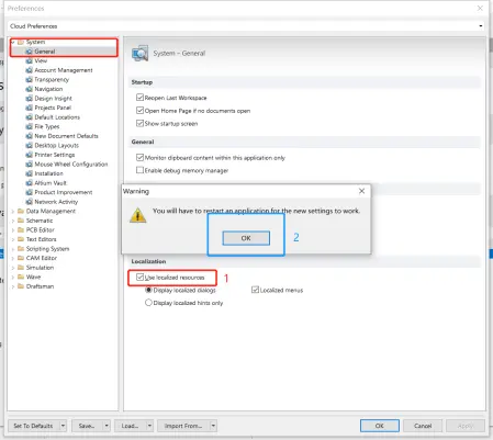 第七步、如图选择“General”>“Use localized resources”>“OK”