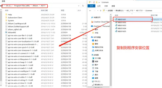 第一步、还是打开你下载的安装包AD 17.0中一个名为“Liceses”的文件夹,里边有一个名为 “NB201601”的.alf格式文件,将此文件复制我们刚刚安装AD的位置根目录,如图: