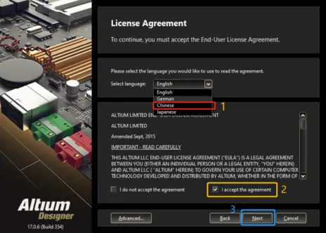 第三步、先选择下拉列表里的“Chinese”,再勾选“I accept...”,再点击“Next”