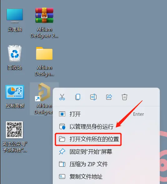 15.鼠标右击【Altium Designer】图标选择【打开文件所在的位置】。