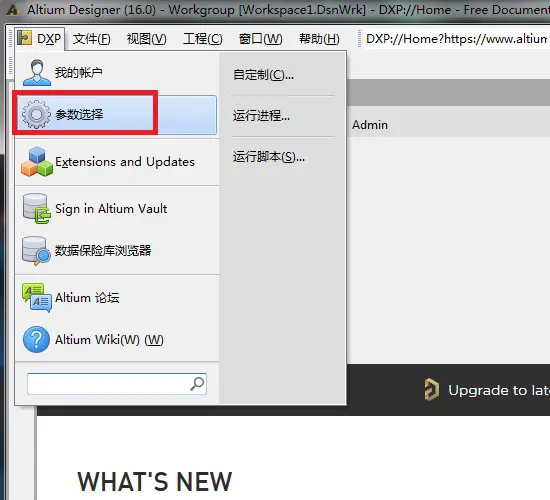 1、首先在电脑上打开altium designer软件,然后点击菜单选项“DXP”下的参数选择选项。