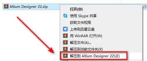 1.鼠标右键解压到“Altium Designer 22”