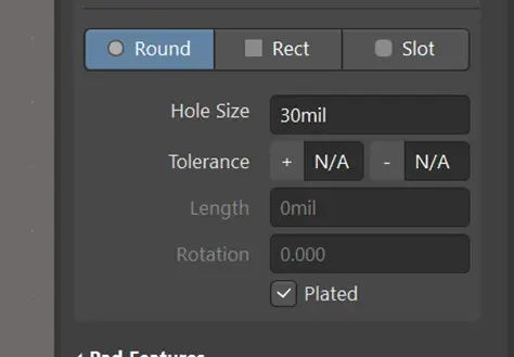 这里讲了一些焊盘的区别,首先,添加焊盘的时候默认是通孔焊盘(multi-layer),需要将其改成表贴焊盘(top-layer)