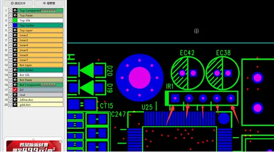 2、排线器件的引脚孔,部分插件器件的引脚很小,当设计的插件孔小于0.5mm时,在制造端可能会误把引脚孔当成过孔处理。尤其是Altium Designer软件设计的文件,输出Gerber时所有过孔都有开窗,因此容易把小的器件引脚孔与过孔搞混。