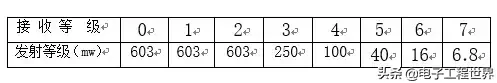 所谓功率等级就是工程师们在手机编程时把接收信号分为八个等级,每个接收等级对应一级发射功率(如下表),手机在工作时,CPU根据接的信号强度来判断手机与基站距离远近,送出适当的发射等级信号,从而来决定功放的放大量(即接收强时,发射就弱)。