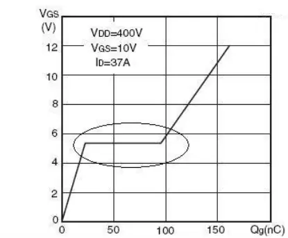 有了以上模型,就好办了,尤其从运放这张图中,可以一眼看出,这就是一个反相积分电路,当输入电阻较大时,开关速度比较缓慢,Cgd这颗积分电容影响不明显,但是当开关速度比较高,而且VDD供电电压比较高,比如310V下,通过Cgd的电流比较大,强的积分很容易引起振荡,这个振荡叫米勒振荡。所以Cgd也叫米勒电容,而在MOS管开关导通或者关断的那段时间,也就是积分那段时间,叫米勒平台,如下图圆圈中的那部分为米勒平台,右边的是振荡严重的米勒振荡: