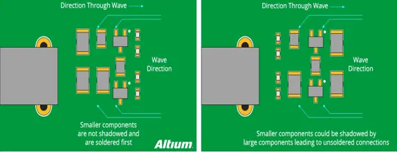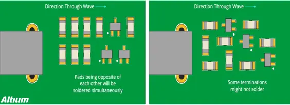 良好的芯片元件方向(左)和不良的芯片元件方向(右)