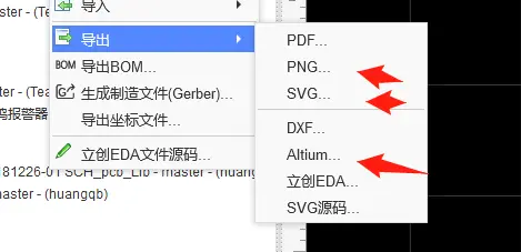 15、支持直接通过浏览器或者客户端导出PNG,导出SVG,导出Altium文件啦,库文件也支持导出Altium啦,之前是通过服务器导出的