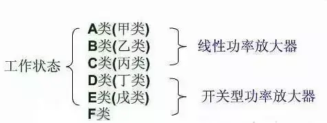 根据工作状态的不同,功率放大器分类如下: