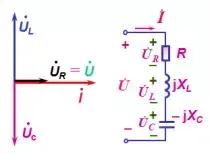 ,这时,电压与电流同相,电路中发生串联谐振。