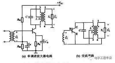 高频小信号选频放大器用来从众多的微弱信号中选出有用频率信号加以放大,并对其他无用频率信号予以抑制,它广泛应用于通信设备的接收机中。单调谐放大器电路及交流通路如下图所示。