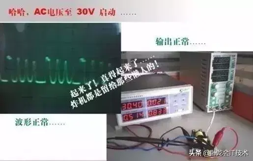 从0Vac开始升,会看到示波器上波形会有浮动(改成直流耦合会很清楚看到电压在上升)。当调压器的电压至40~60Vac区间时,如果示波器波形还没有变化的话,退回0Vac,重新检查电源板。