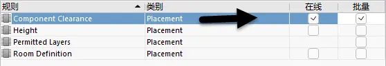 DRC不是说所有的规则都需要检查,设计者只需要检查自己想要检查的规则即可,不想检查的规则对应的“在线”和“批量”取消勾选就好了。下面对常见的几种DRC进行详细的描述。