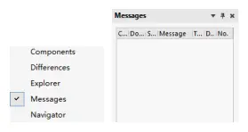 对上述常见的DRC检查选项设置勾选之后,执行DRC菜单左下角的“运行DRC”命令,运行DRC,等待几分钟之后,系统会生成一个DRC报告,详细列出错误内容及位置,如图11-13所示;或者回到PCB设计交互界面,在右下角执行命令“Panels-Messages”,如图11-14所示,同样可以查看DRC类型。一般情况下都是采用第二种方法来进行查看。