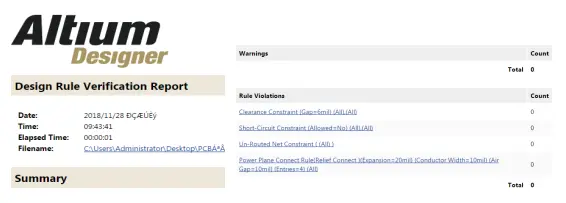重复上述步骤直到所有DRC报错更改完成,没有DRC报错或者所有DRC报错可以忽略为止,即完成DRC。PCB电路设计通过DRC,可以进行下一步骤。