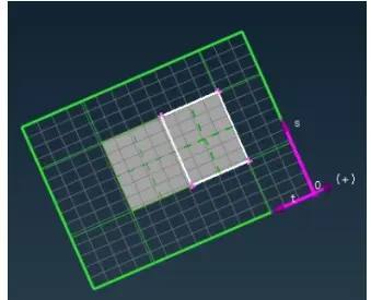 处理Faces的更方便的方法是使用交叉阴影线。阴影线显示为绿色虚线,表示面所在的曲面的等参。用户可以直接通过交叉阴影线精准地选择对应的面Face。如果Face被“冻结”了(通过“Frozen”功能,表示拒绝修改),则其阴影线将显示为成蓝色。