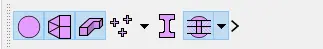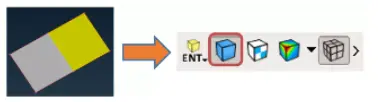 即3D空间中始终位于Surface实体上的曲面,并且具有称为CONS(曲面Surface上的曲面Curve)的特定边界。Face的正面为灰色,负面为黄色。Face的可见性由相应的标志按钮控制,如下所示: