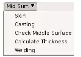 对薄壳体提取中间面的命令是【Mid-Surface】,该命令有5种与提取中面有关的选项,如下所示: