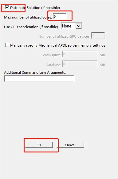 12、勾选Distribute Solution,并设置Max number of utilized cores为6(这里根据自己电脑的核心数进行设置,有几个设置几个),然后单击ok.