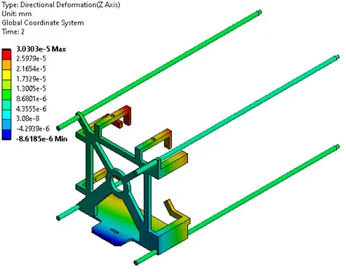 该形变数据将直接与 OpticStudio 中原始模型的性能数据进行比较。在运行任何FEA(有限元分析)之前,Ansys Mechanical 假设光机械和光学器件浸泡在室温环境中,且没有对光学器件施加任何应力。因此,我们可以假设原始序列模型模拟了光学系统在环境温度和压力下的性能。