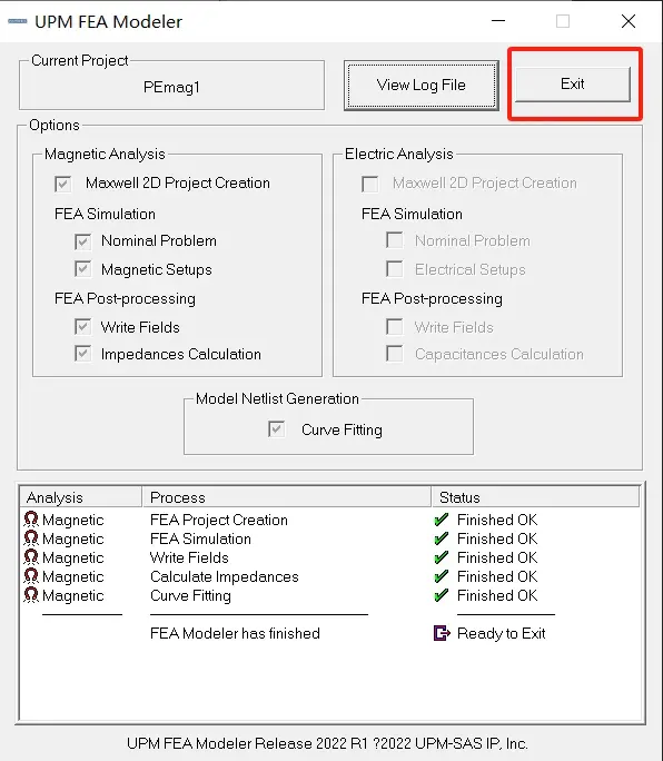 模型创建完成后会有以下弹窗,点击确定按钮——>另一个弹窗excit按钮