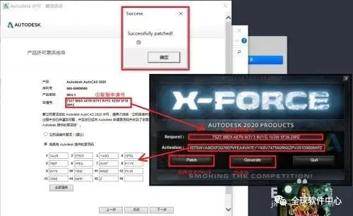 打开激活工具,复制申请号生成激活码,粘贴完成软件激活。
