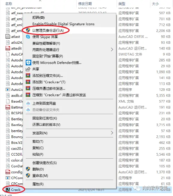 10.找到【Crack】文件,右键【以管理员身份运行】,点击【应用】。