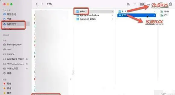 8,重要提示!!!注意!!请按以下路径!将R25文件移到废纸咯,然后将R15名字修改为R25!这一步很重要!不然会激活失败!