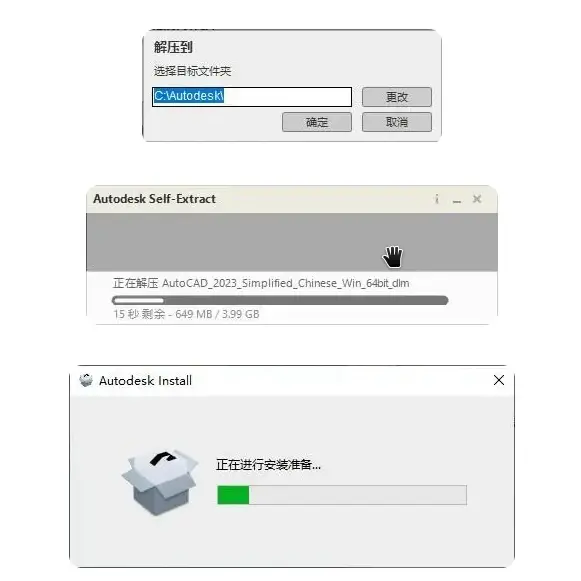 第三步、AutoCAD 2023 中文版安装程序自解压并启动安装界面。
