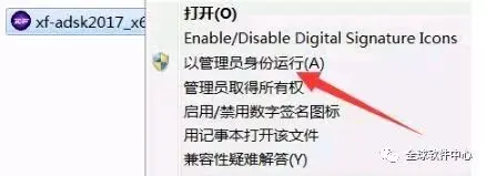 打开最开始解压出来的安装包中的注册机,用鼠标右击注册机,选择【以管理员身份运行】