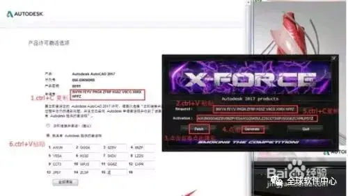 把申请号复制到注册机里面的Request,先点击Patch,再点击Generate后复制激活码,然后粘贴激活码,最后点击下一步即可。