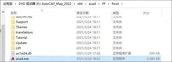 8、在软件包中找到acad.exe程序复制到安装文件中; 默认目录【C:\Program Files\Autodesk\AutoCAD 2022】
