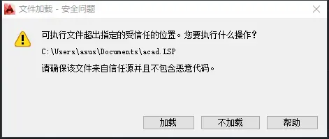 这是 AutoCAD 中毒了,找到所有文件夹里这个文件删掉就好,如果觉得一个个找麻烦,可以用命令。 打开命令提示符,输入这段并回车,注意最后的文件名,必须和提示中的文件名一致 FOR %a in (C D E F G H I J K L M N O P Q R S T U V W X Y Z) DO ( IF EXIST %a: ( DEL /A /F /S /Q %a:\acad.lsp) )
