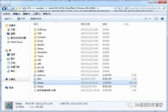 1、下载autocad2016简体中文版64位破解版解压,解压之后找到安装文件setup。