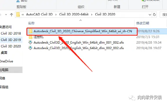 31.此时软件为英文版,接下来我们破解为中文版。打开【Autodesk_Civil_3D_2020_Chinese_Simplified_Win_64bit_wi_zh-CN】文件夹。