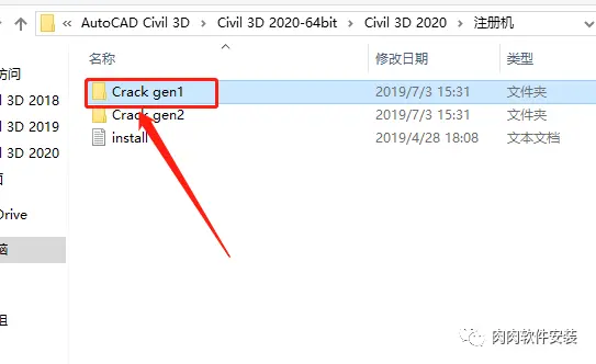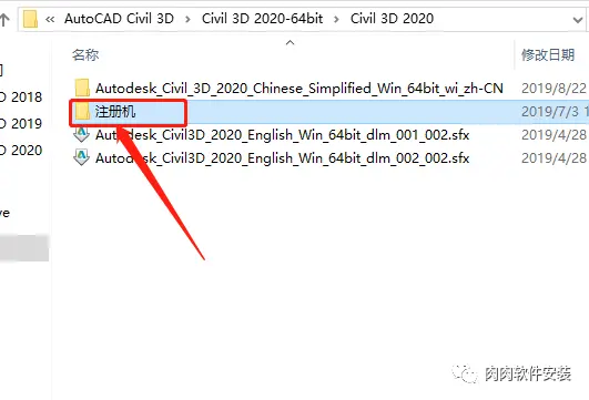 22.返回到开头解压的【Civil 3D 2020】文件夹,打开【注册机】文件夹。