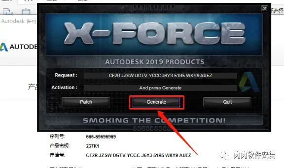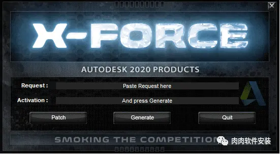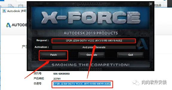 26.使用Ctrl+C键复制申请号,然后使用Ctrl+V键粘贴到注册机里面的【Request】中(记得删除原请求码中的内容),然后点击注册机左下角的【Patch】。