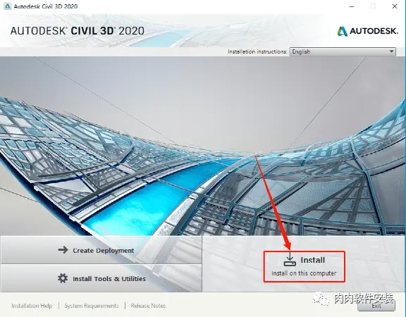 9.点击【Browse】设置软件的解压路径,建议解压到除C盘以外的磁盘,可在E盘或其他盘新建一个【Civil 3D 2020】文件夹,设置好解压路径后点击【Install】。