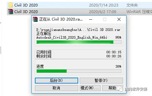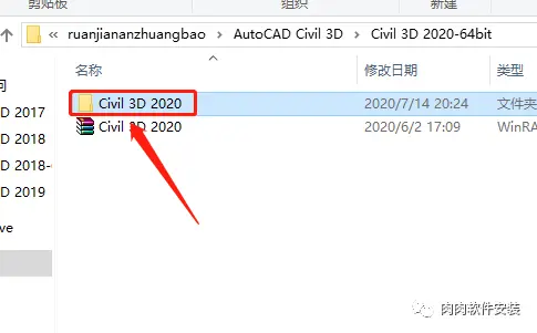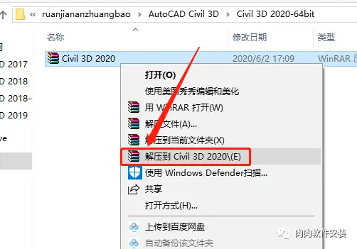 1.打开下载好的软件安装包,鼠标右击【Civil 3D 2020】压缩包,选择【解压到Civil 3D 2020】。