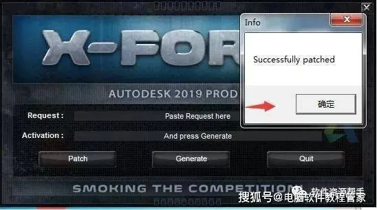 13.把申请号复制到注册机里面的Request中(记得删除原Request中的内容),先点击Patch,再点击Generate后复制Activeation中生成的激活码,然后粘贴激活码至我具有Autodesk提供的激活码方框中。最后点击下一步即可。
