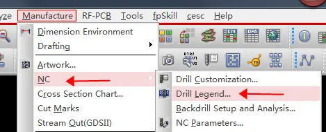 9. 执行菜单栏命令Manufacture→Nc→Drill Legend,如图。