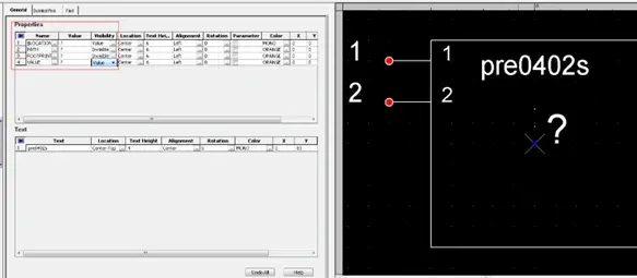 1、 当在原理图库编辑器symbols-sym_1-general-properties(以下简称符号编辑器)和此处(part.ptf文件)都有的信息时,part文件优先级更高(如下图所示,符号编辑器中的value栏值为?,part中设置value值为实际阻值,则原理图中会显示实际阻值,)