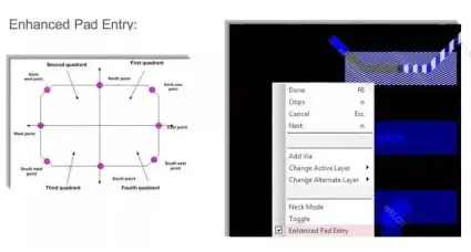利用Cadence Allegro的Enhanced Pad Entry功能能够让我们在layout时尽可能的避免导线与焊盘在出线时形成夹角,避免造成“acid traps”DFM问题。