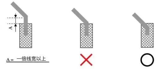 焊盘的出线角度设置避免导线与焊盘形成锐角角度的夹角。