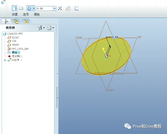 (1)单击“旋转”选择FRONT面作为草绘平面,参照平面为TOP面。