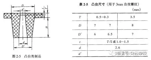 A=(1.0~1.8)T mm ;B=(0.5~0.7)T mm5 .凸台类制品(图 2-5 、表 2-5 )