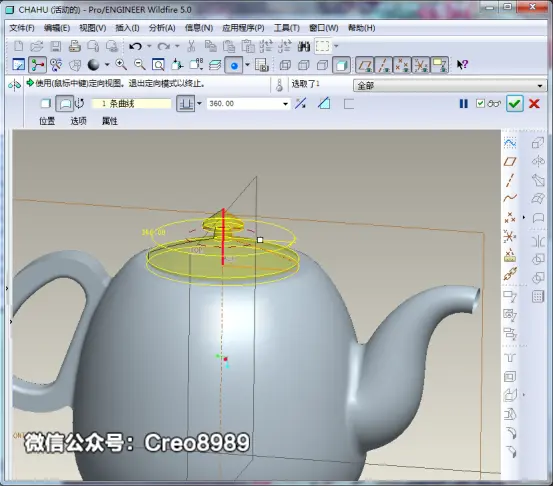 14. 壶把手绘制,草绘面设置为RIGHT面TOP面做左参照