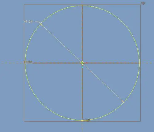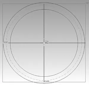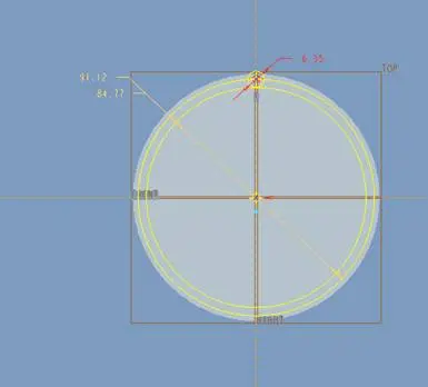 链轮上被链条节距等分的圆称为分度圆,其直径用d表示(见图1)。若已知节距p和齿数z时,链轮主要尺寸的计算公式为: 分度圆直径(pitch diameter) d= 齿顶圆直径(outside diameter) da,max=d+1.25p-d1 da,max=d+(1- )p-d1 齿根圆直径 df=d-d1(d1为滚子直径) 分度圆弦齿高ha ha max=(0.625+ )p-d1 ha max=0.5(p-d1) 如选用三圆弧一直线齿形,则 da=p(0.54+cot ) 二、三维造型 1.新建零件文件 具体步骤为: (1)新建零件文件“Chain_Gear”。 (2)取消选中“使用缺省模版”复选项,使用“mmns_part_solid”选项。 2.添加链轮参数和关系式 具体步骤为: (1)打开“参数”对话框,添加齿轮参数。 (2)打开“关系”对话框,添加链轮关系式,并通过这些关系和已知参数确定未知参数的数值。 (3)编辑“程序(Program)”建模程序。 编辑“程序”,使链轮模型更新时自动提示输入链轮的主要参数,并输入链轮的关系式,建立链轮和参数之间的关系。 3.建立坐标系 选取FRONT、RIGHT、TOP面作为参照,在定向中选取TOP面作为Z轴、FRONT面作为Y轴。 4.分别建立链轮的齿根圆、分度圆和齿顶圆 (1)单击“草绘工具”,在TOP面上绘制3个圆,如图3所示。 (2)点击“信息”下拉菜单选择“切换尺寸”,以符号显示尺寸。