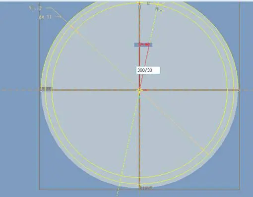 (2)阵列上述特征。在快t菜单中选择“尺寸”以创建阵列,选择尺寸SD198,数目为18。如图6所示: